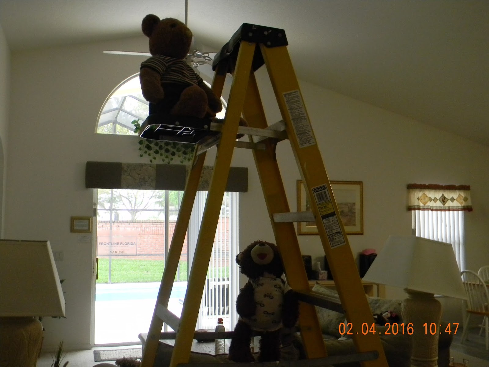 ........ he found a mouse in the house and climbed up to get it off the sitting room light fixture, and then cleaned that one (the light, not the Mouse)......